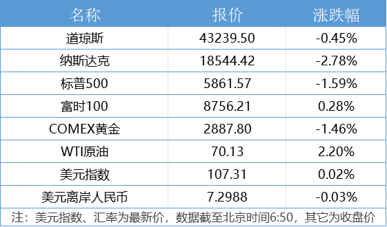 1、好意思国三大股指全线收跌,谈指跌0.45%报43239.5点,标普500指数跌1.59%报5861.57点,纳指跌530.84点,跌幅2.78%。英伟达跌超8%,赛富时跌逾4%,领跌谈指。中概股深广下降,纳斯达克中国金龙指数跌0.93%,万得中概科技龙头指数跌0.83%。
